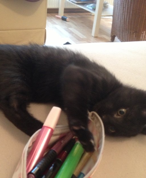 Så historien vår endte godt, pusen har spist, kost og lekt masse før vi tok kvelden..