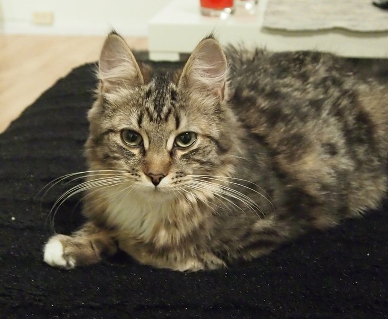 14mnd gammel hunkatt. Meget omgjengelig, snill og tillitsfull katt. Er sjelden langt hjemmefra og er til vanlig hjemme hver kveld. Frykter påkjørsel, eller at hun kan være innelåst, hadde vært fint om folk i nærområdet kan sjekke boder, garasjer o.l.