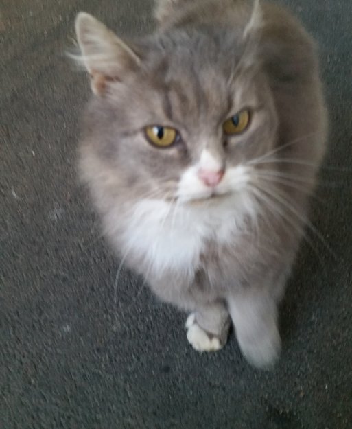 En grå pus har lusket rundt omkring leiligheten vår i ca to uker nå. Etter at barna begynte å mate den så har den ikke gått igjen. Noen som savner denne kjælne og snille pusen? Den er lys grå med hvite flekker rundt snuten, haken og bryst samt på potene.
