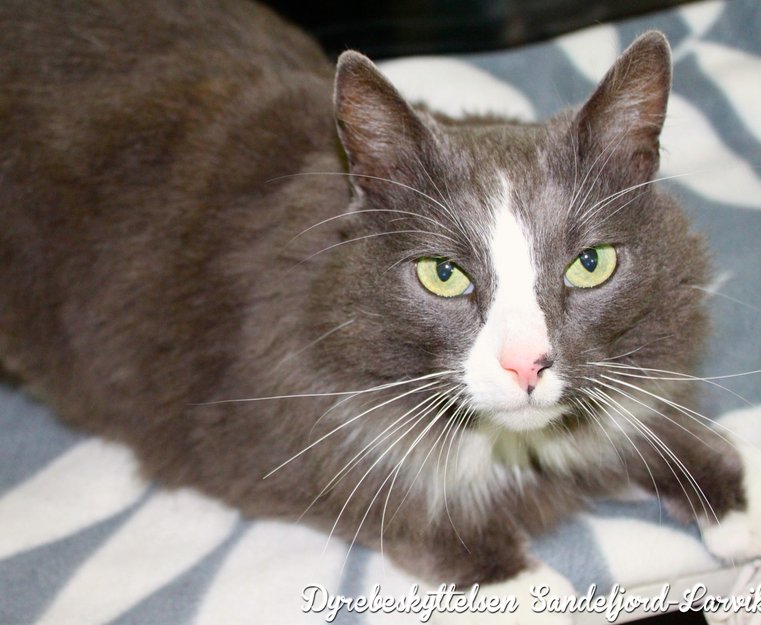 Grå og hvit hannkatt ble funnet i Sandefjord