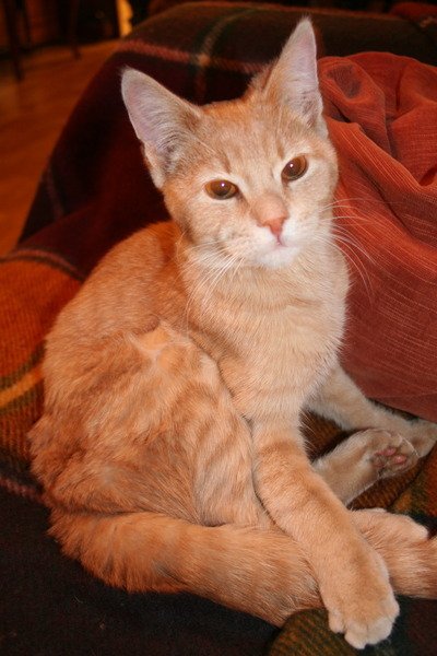 Liten av vekst, gangske mager, ensfarget i lys rødlig kremfarge med antydning til striper på halen. En såkalt skipskatt med en ekstra "tå" på hver pote. Veldig menneskekjær og kosete