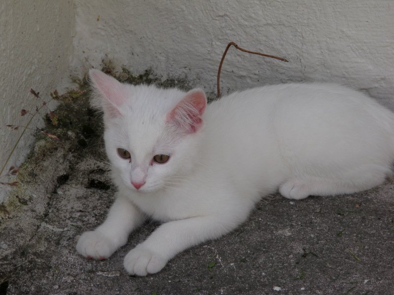 (Bildet er fra hun var ca 6 mndr)helt hvit katt med grønne øyne,liten hunn katt.kjempesøt...