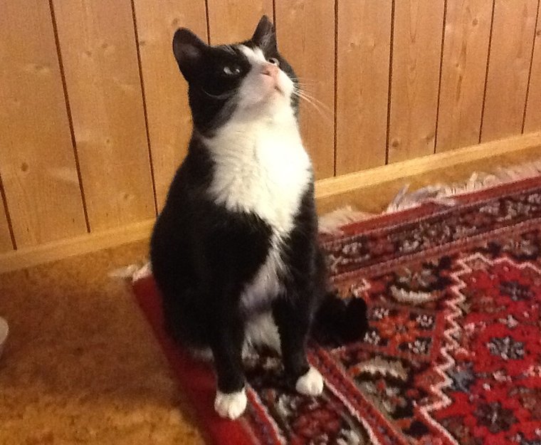 - Katt, Vanlig svart/hvit korthåret huskatt.