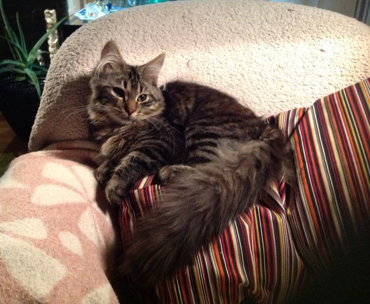 Maximus er egentlig en innekatt, men fikk alltid ta en liten tur rett utenfor å lufte seg litt. Jeg hadde terrassedøre åpen ofte og han var tilbake etter få minutter. Han er bare 6 mnd gammel. Og vi fikk denne skjønne kattungen i august.