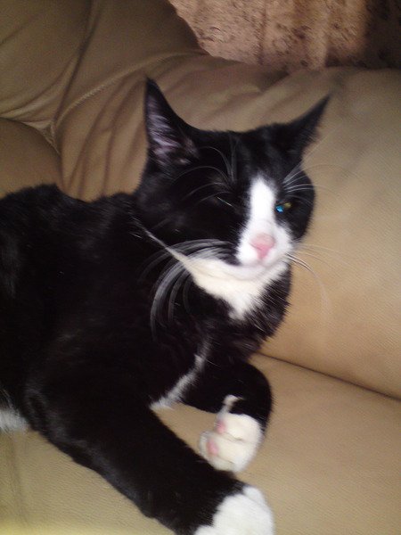 Svart og hvit katt, veldig sosial, kosete, leken og husren. ca 1 år gammel