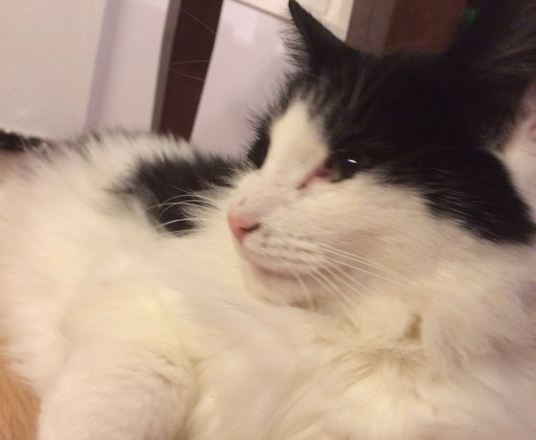 En snill dame slapp meg inn i hjemmet sitt og fant annonsen til mine eiere på denne siden. Da hadde jeg vært ute og utforsket nærmiljøet i 5 dager og begynte å bli litt sulten. Det var godt å få komme hjem til matfatet mitt og mine faste soveplasser.
