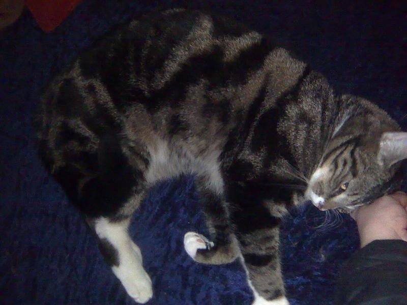 Ganske stor,spraglet hankatt,veldig snill,litt sky.