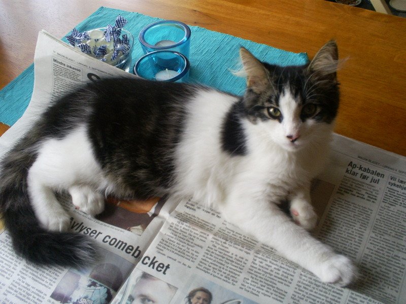 Alo var savnet siden 1.oktober,kom hjem i dag 10.oktober..kom opp trappa hjemme skrikende når vi var ute..gjett om vi ble glad..=)så nå er han badet og ligger i stolen sin og sover..