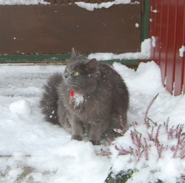 grå, litt lubben langhåret pus, med hvitt på brystet. Veldig menneskekjær og tillitsfull katt lyder navnet solo (til en viss grad). Ligner skogskatt, barnslig fjes.