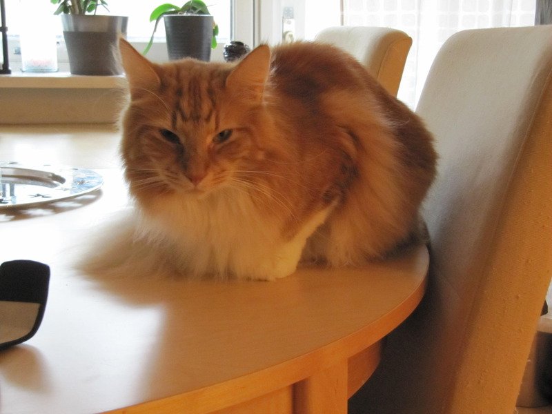 langhåret skogskatt(rasekatt) med stor hale og sort flekk på øret. innekatt som ikke er vant til å være ute. Axel er sosial og kosete.