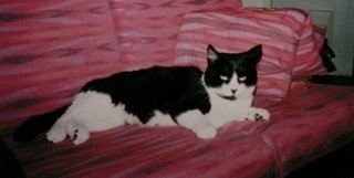 Svart/hvit, korthåret og kastrert hannkatt. Ikke halsbånd. Ca. 7 kilo da han forsvant. Liten kul (brokk) på magen.