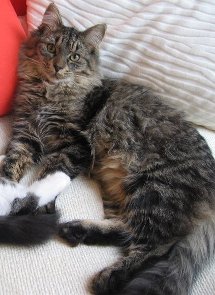 I dag morges, etter 10 døgn på avveie, dukket Mio endelig opp. Han sto utenfor døra og mjauet, tynn og pjuskete, men ellers i god form! Kan tro matmor er glad!! :)