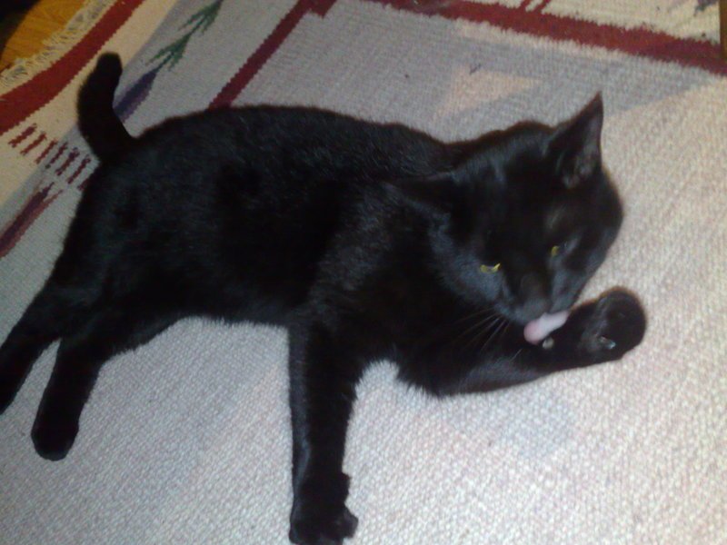 Stripa er helsvart, men har 1 hvit tynn stripe på brystet(ikke mange hvite hår)