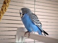 Blå undulat med hvit ansikt og svarte tegninger på vingene.