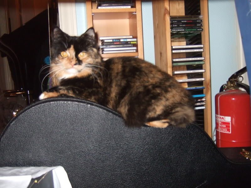 Ganske liten katt, tynn, halvlangt hår