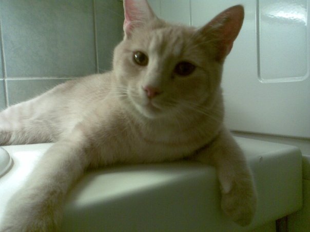 Kremgul guttekatt dukket opp i Tunheimbakken for et par uker siden. HAn er veldig rolig og snill. Når han kom til oss var han veldig sulten.
