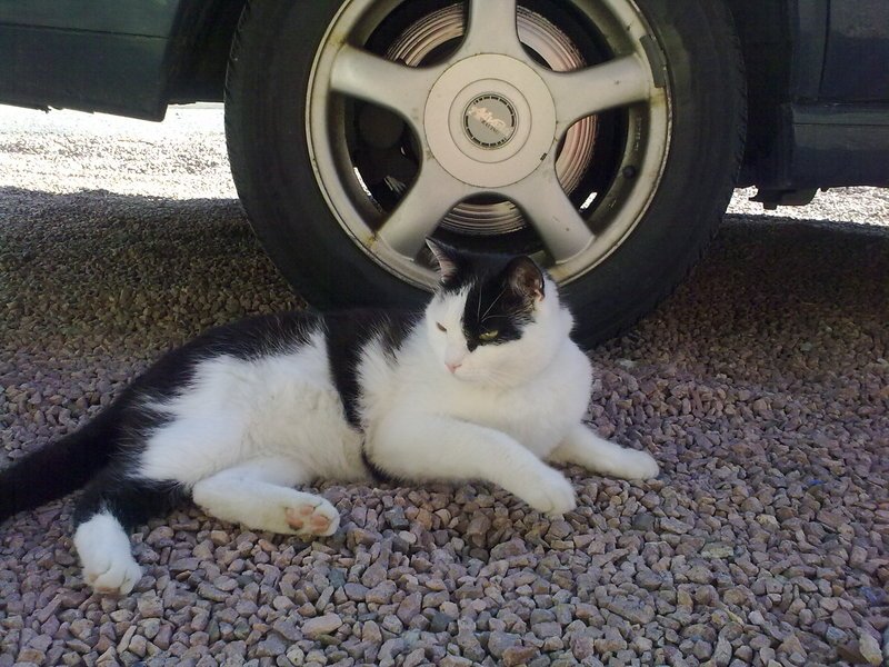 To år gammel, sosial hannkatt. Normalt bygd og bærer halsbånd med adresse og telefonnummer på innsiden. Kan ha blitt observert sammen med søsteren sin, som er grå/hvit og langhåret (hun har kommet hjem nylig).