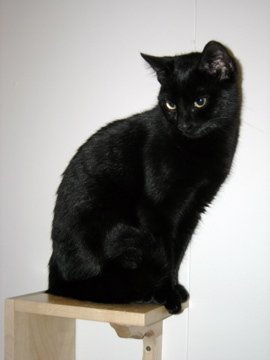 Helt sort, korthåret, blank og fin i pelsen
