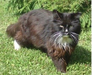 Katten er syk og må ha medisin fortest mulig. Han hoster og snørrer, og har antagelig en infeksjon/lungebetennelse. Vi var hos dyrlegen mandag ettermiddag, og han virket litt piggere etterpå. Han ville etter hvert ut, og jeg lot ham gå. Han har vært raskt inne igjen ellers, men ikke denne gangen....Nå er jeg bekymret. Han er en gammel, snill og god katt. Har du sett ham i området Nordviveien, Tanndalsveien, Smestadlykkja...?