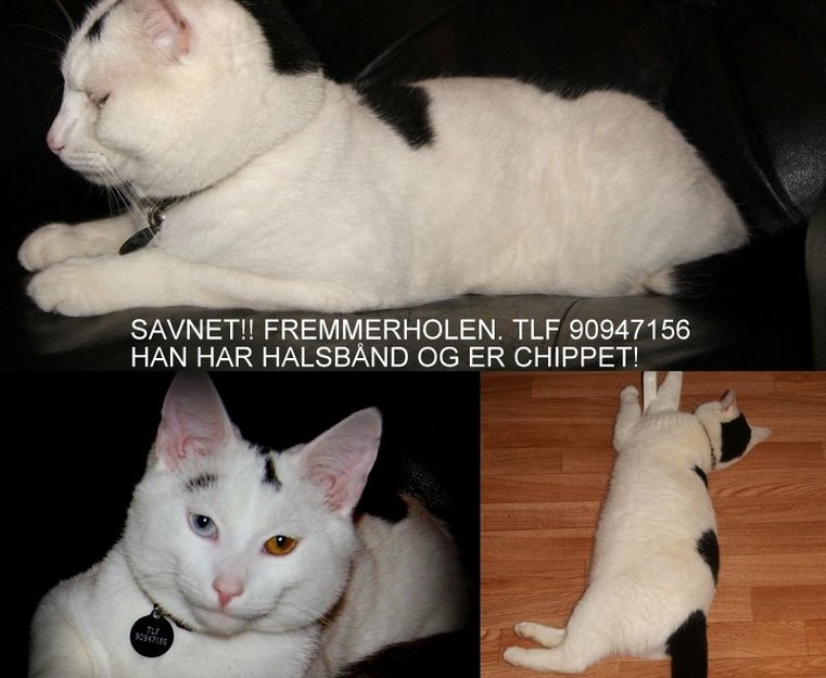 Han har et svart hjerte på ryggen og han er oddøyd. (et gult og et blått øye)