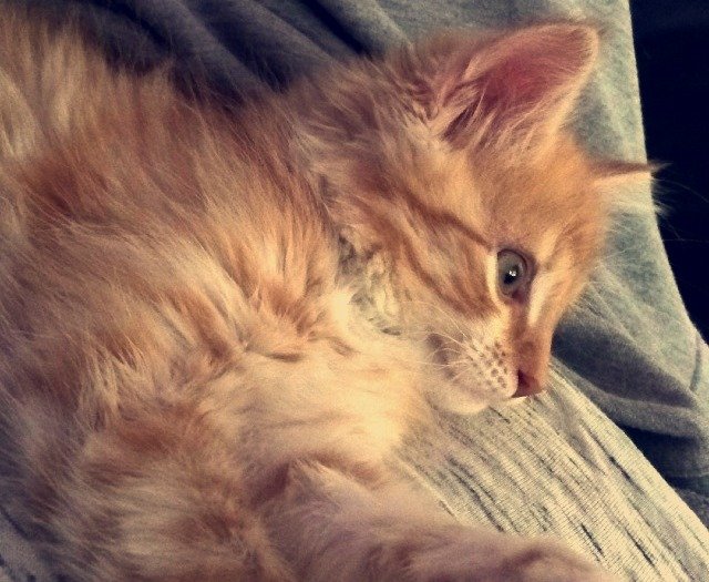 Han var innestengt i garasjen til naboen. Heldigvis hadde ungene funnet han når de skulle hente akebrett, og kom til oss med han. Da skalv han og var kjempe sulten! Nå koser vi oss i sofaen, og han har fått godbiter siden det er 5mndrs dagen hans idag! :D