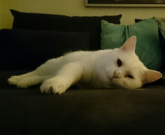 Tony er helt hvit hannkatt. Han er helt døv og sjenert. Han miauer høyt siden han ikke hører seg selv. Han vil nok ikke komme for nært ukjente.
