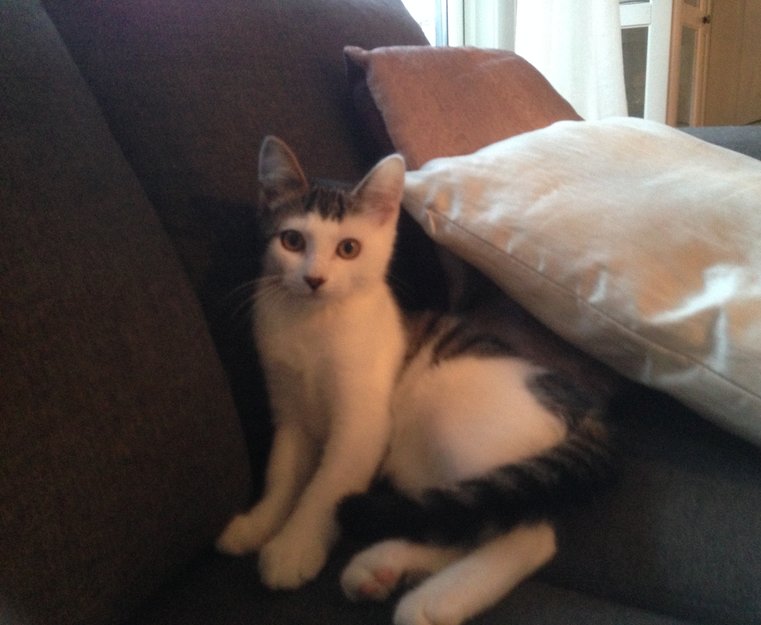Etter å ha vandret til Straume bro, ble den funnet av en annen katteeier. Hun søkte på dyrebar.no der denne annonsen lå øverst.