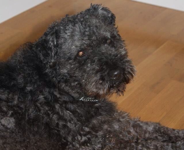 Han har lite pels nederst på ryggen,ellers litt raggete på beina