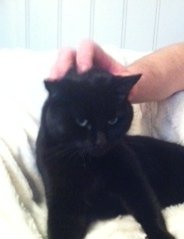 Svart katt med liten hvit flekk på halsen kommer til oss hele tiden. Vi lurer på om noen eier den. Den er svært kosete og kontaktsøkende. Den har et stygt sår på venstre bakfot (tror ikke det er ferdig grodd, så relativt nytt). Den er øremerket, men klarer ikke å lese hva det står.. Den virker også sulten, da den følger etter mjauende hver gang vi er på kjøkkenet.. Når vi slipper den ut står den utenfor å mjauer å ser inn.