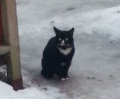 Den har holdt til under en bod og forsøkt å tigge mat hos en nabo som har katter og hos meg. Jeg har også katt.
