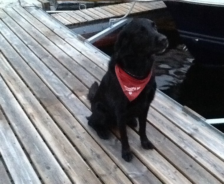 Hun er en stor huntispe (blandingshund ,men mest Flatcoat )med svart hår og med litt grå hår rundt munnen. Hun er veldig lydig , snill og tillitsfull.