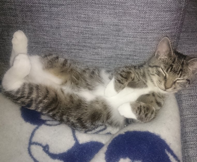 Robben er 7 måneder og fortsatt en ganske liten hannkatt.
