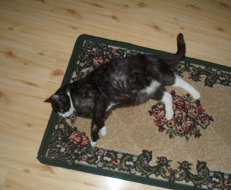 Skipskatt med karakteristiske 'tomler' på hver forlabb. Er tillitsfull og reagerer på navnet 'Bigfoot'.