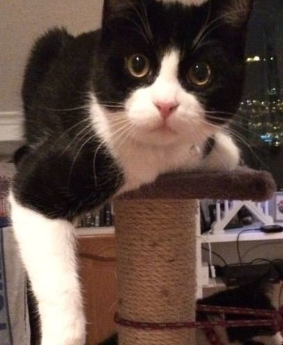 Solan er en korthåret hannkatt, med sort pels og delvis hvitt ansikt, bryst og poter. Den er 1.5 år og ca 3kg.