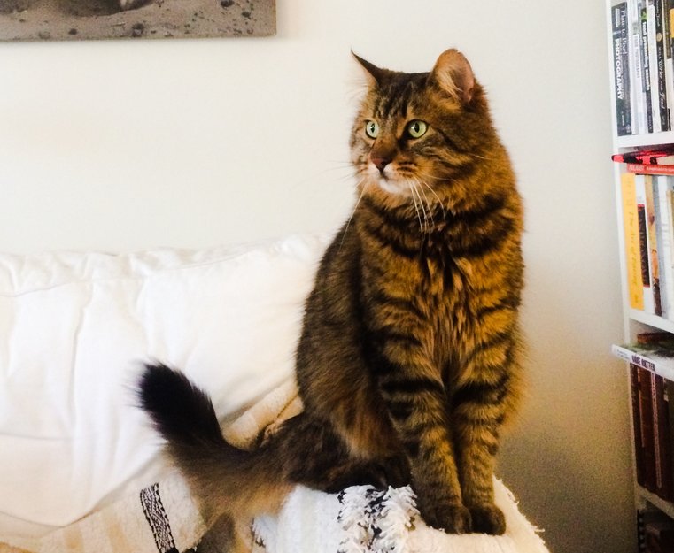 Tiger er en stor gutt. Han er veldig sosial og kosete, men kan være litt tilbakeholden når han er ute. Han har et hakk øverst i høyreøret sitt.