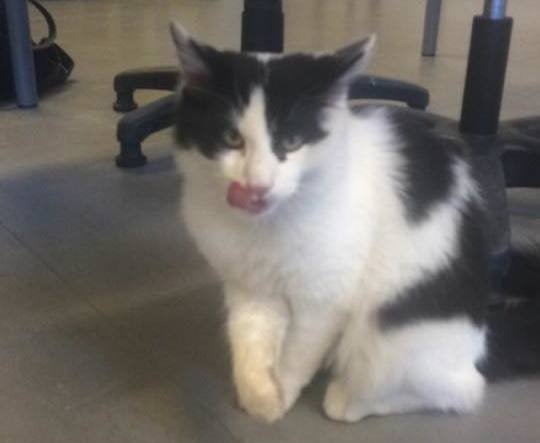 Funnet hvit og sort hannkatteunge på melsom videregående skole.