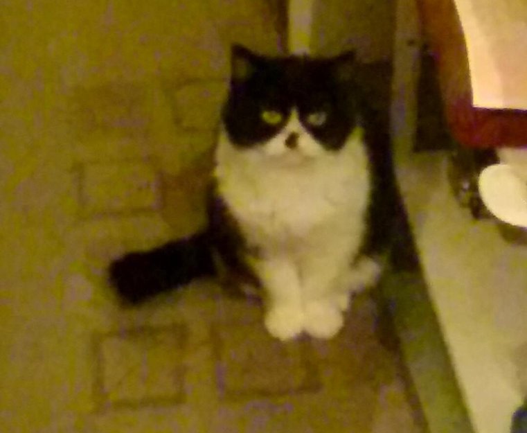 Dette er katten til min bestemor. Katten forsvant under oppussing i blokka hun bor. Vinduene ble byttet, og mens dette ble gjort, har katten kommet seg ut og forsvunnet . Han er en veldig nervøs katt, og er ikke vant med å være ute. Av den grunn vil han mest sannsynlig ikke være lett å få tak i, siden han blir veldig fort skremt.