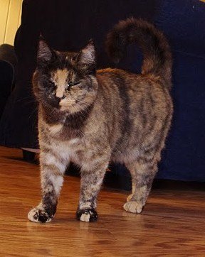 Siden hun er så sky, liker hun ikke at vi drar på ferie, og blir ofte borte noen dager hvis hun ser at vi har dratt bort og at det kommer fremmede kattepassere – men nå har hun ikke vært hjemme på Bekkely (Ringsvegen 540) siden 20. juli, noe som er uvanlig lenge til å være henne. Hun ble sterilisert i ung alder, og har derfor mistet interessen for lange ”frierturer”.