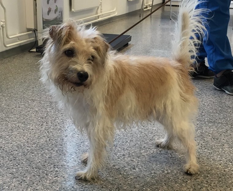 Jeg tok med hunden til Kalbakken Dyreklinikk for å sjekke om den hadde chip - noe den ikke hadde. De kontaktet politiet/Viking og hunden skulle bli hentet på dyreklinikken.