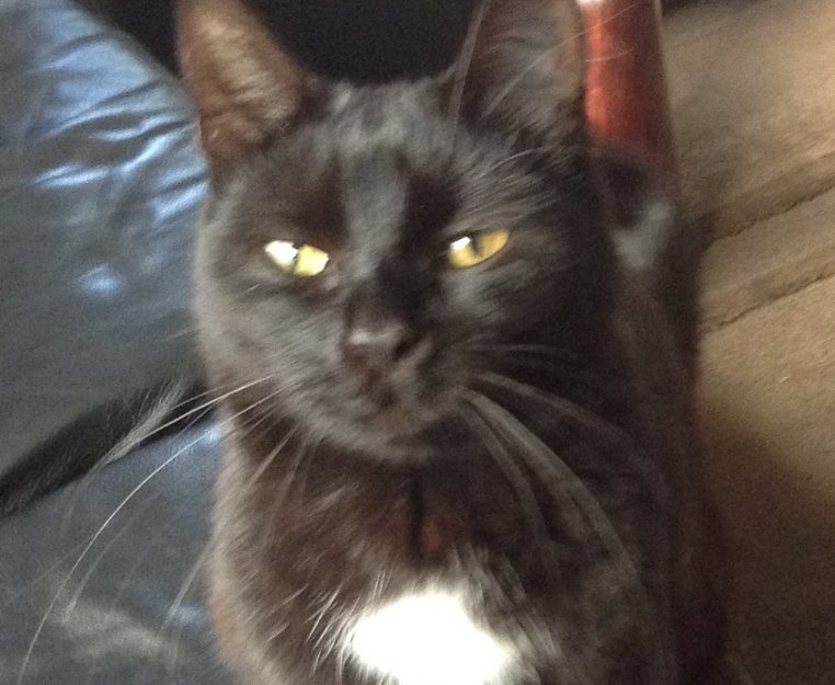 Plutselig mjauet det på døra i dag. Jeg husker å ha hørt en bil stå å gå ved veien, men tenkte ikke så mye på det før hun kom. Så tusen takk til den som fraktet henne hjem hvis det var det som skjedde. 😀