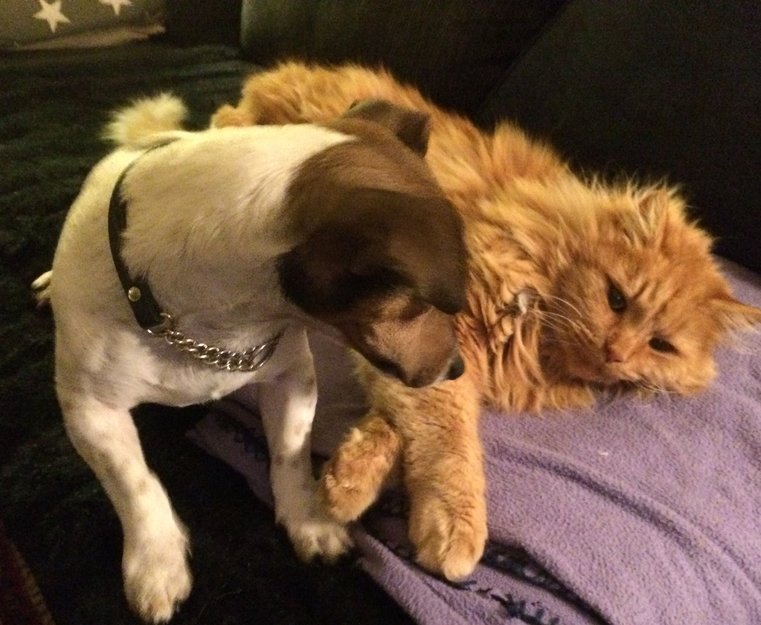 Veldig lang pels endel floker etter vinteren. Kjelen og pratsom