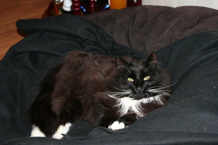Sjenert, stor, lodden og voksen skogkatt. Ganske kosete og rolig hvis man først blir kjent med han.