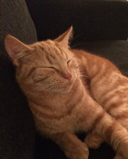 Snart 1 år gammel , oransje striper, tatovert grønt id merke i øret, kosete