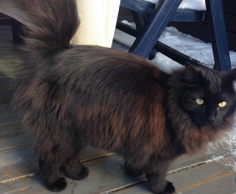Katten ble sluppet ut kl.24.00 den 21.04.15. Har vært litt opptatt av fuglene den siste tiden. Da den ikke er et år ( født mai 2014) og nysgjerrig på livet. Har ikke vært borte tidligere.