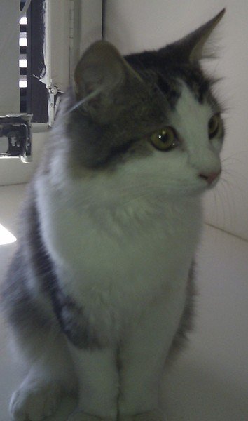 Stian er en vakker ung hannkatt med langhåret hvit myk pels med felt av tigret i grå og brun. Snill og medgjørlig katt.