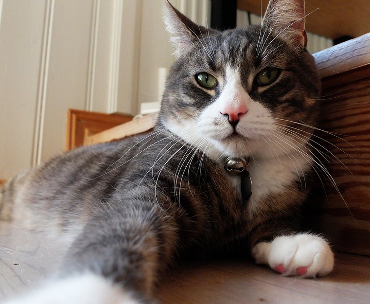 Har flekkete mage, skjønnhetsflekk på venstre side av nesen. Mangler en klo på venstre bakfot.
