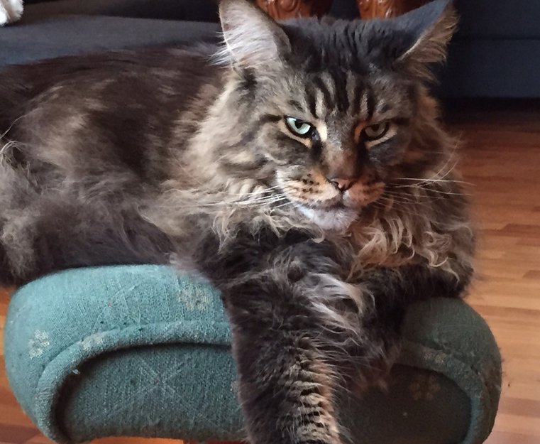 Naboen ringte kl 11:00 i dag 3/5-15 og sa at dei hadde sett Hårek bak huset. Han hadde gjøymt seg under et fortog og blei observert med ei pusedame utan hale ??? Han har vore borte no i 5 netter og var nærast ihelsvolten, No ligg han etter å ha satt til livs store mengder turrfor og anna godt på sofaen strekk ut saman med matmor som er kjempeglad for at Håreken har kome til rette.