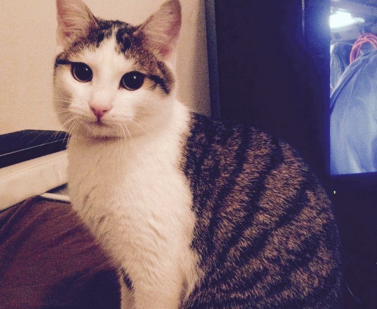Har hvit haletipp og ID merket i øre. Veldig kosete og kan dilte etter mennesker. Har veldig lys piping/mjauing