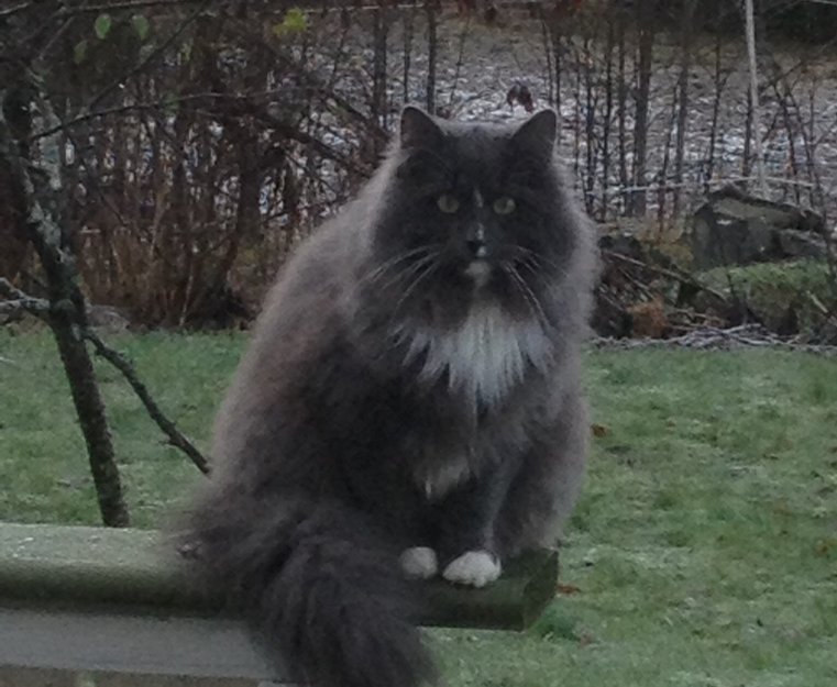 Fillekatta kom hjem helt av seg selv, full av flott og Veeeeeldig sulten 😀