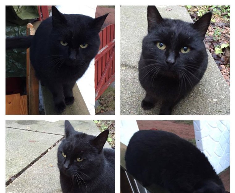 Han er helt sort , slank hannkatt og med" kor"t pels.